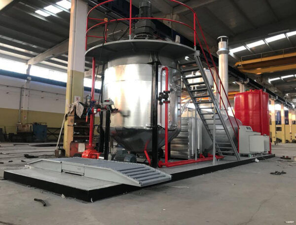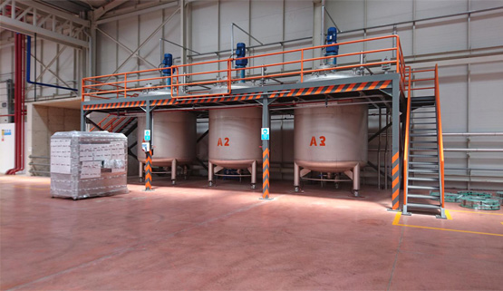 The process consists of automatic charging of raw materials, with manual controlled feedings of solids.